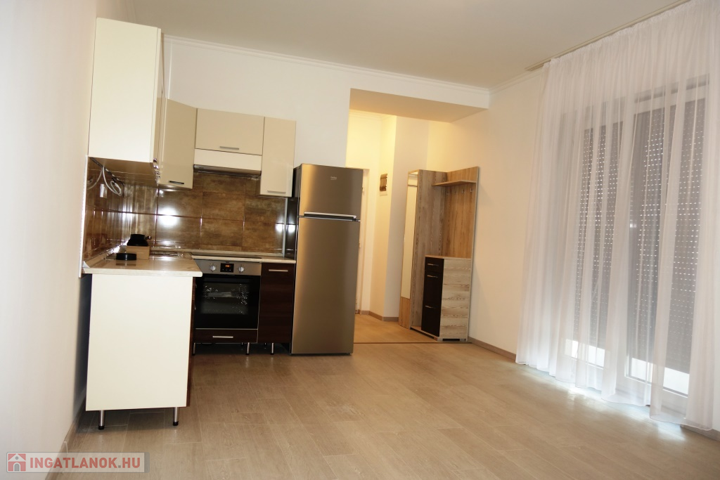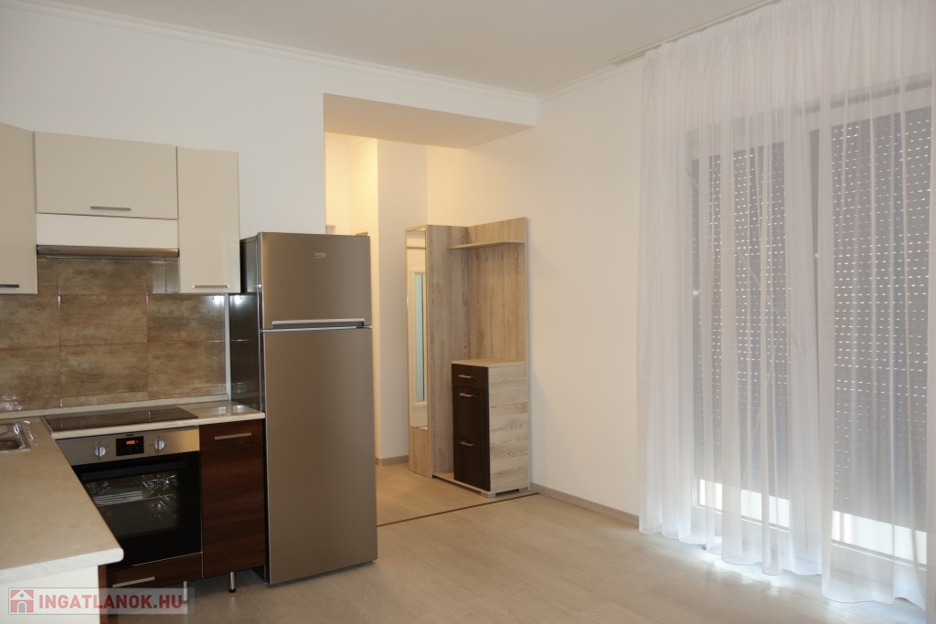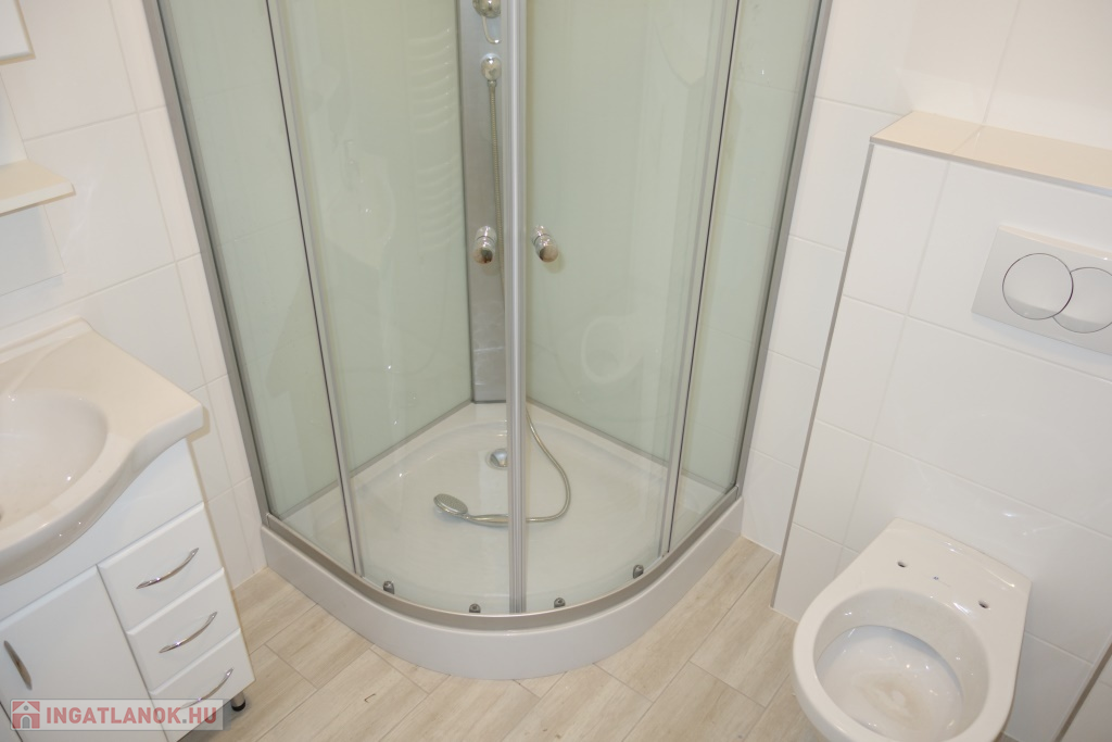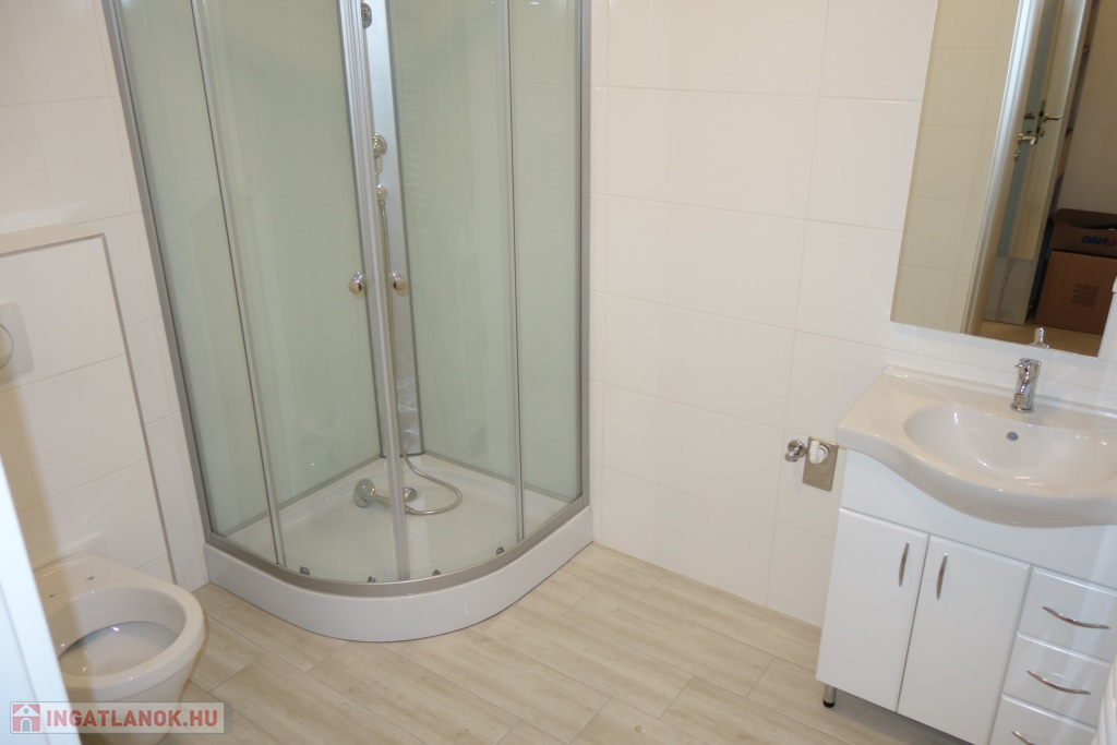 A lakásban 1 hálószobát és amerikai konyhás nappalit , külön helyiségben a fürdőszobát találunk . A fürdőszoba tágas amiben zuhanyzó, wc, mosdó van . Mosógépet hozni szükséges , de víz-csatorna kiállások megtalálhatóak .